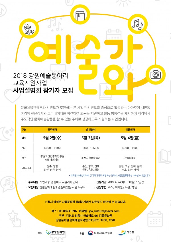 2018강원예술동아리 교육지원사업 설명회 안내