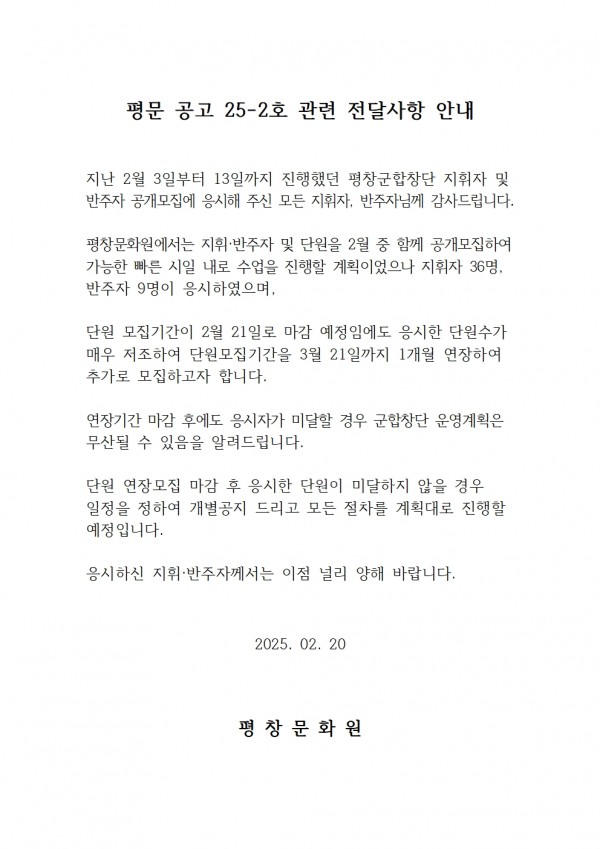 평문 25-02호(합창단 지휘, 반주자 모집) 관련 전달사항 안내 페이지 정보 작성자 평창문화원 작성일25-02-20 10:48 조회916회 댓글0건 이전글 다음글 목록 본문 평문 25-02호 관련 전달사항 안내 댓글목록 등록된 댓글이 없습니다. 이전글 다음글 목록
