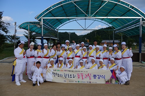 평창문화원 주최 농어촌희망재단 주관 농림축산식품부에서 후원하는 농촌 교육 문화 복지 지원사업 향토소리 풍물교실이 지난 9월 12일 진부면 체육공원에서 종강식을 가졌다.