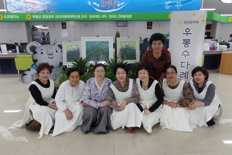평창문화원 우통수 다례반 평창 진부지역 선생님들이 군청 민원실에서 찾아오시는 민원 및 관계공무원에게 찻자리 체험 등 봉사를 실시했다.