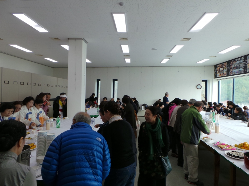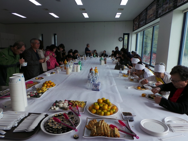 김밥과 다과로 간단한 점심 제공. 모두 즐거운 모습으로 행사에 임함.