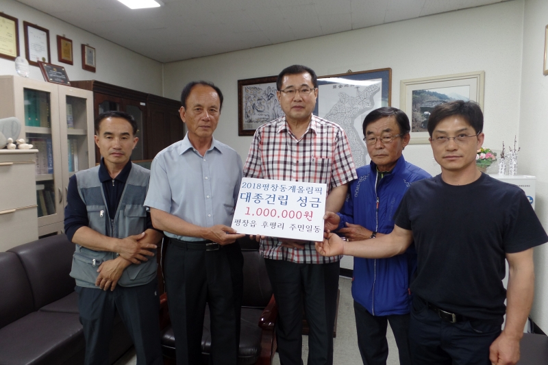 문화원 | 평창읍 후평리 주민일동 기부금 전달 페이지 정보 작성자 평창문화원 작성일16-06-17 11:55 조회2,478회 댓글0건 이전글 다음글 목록 본문 평창군 평창읍 후평리 주민일동을 대표하여 이장님과 임원분들 문화원 방문 기부금 전달 댓글목록 등록된 댓글이 없습니다. 이전글 다음글 목록