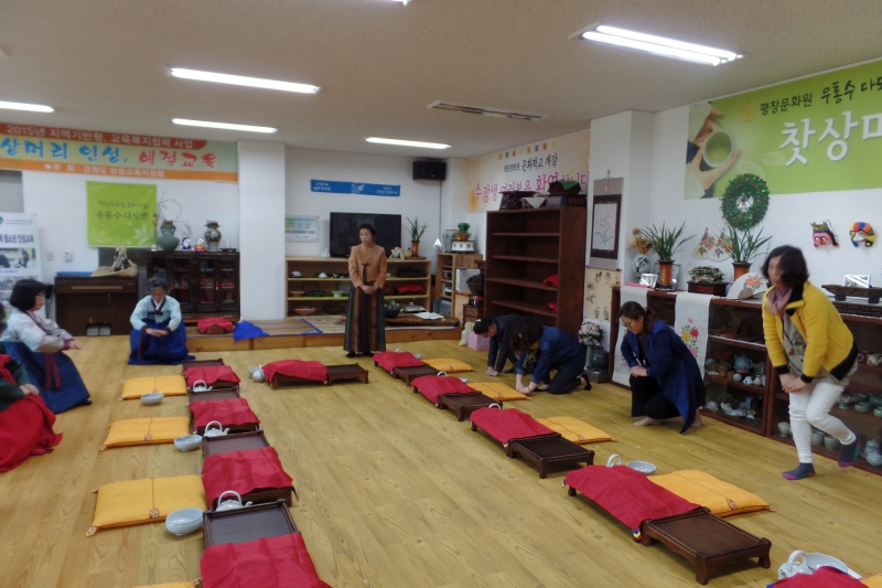 한국문화학교 | 다례반 개강(용평지역) 페이지 정보 작성자 평창문화원 작성일16-04-06 10:21 조회2,442회 댓글0건 이전글 다음글 목록 본문 다례반 개강남자와 여자의 평절과 큰절하는 법차예절 등 댓글목록 등록된 댓글이 없습니다. 이전글 다음글 목록
