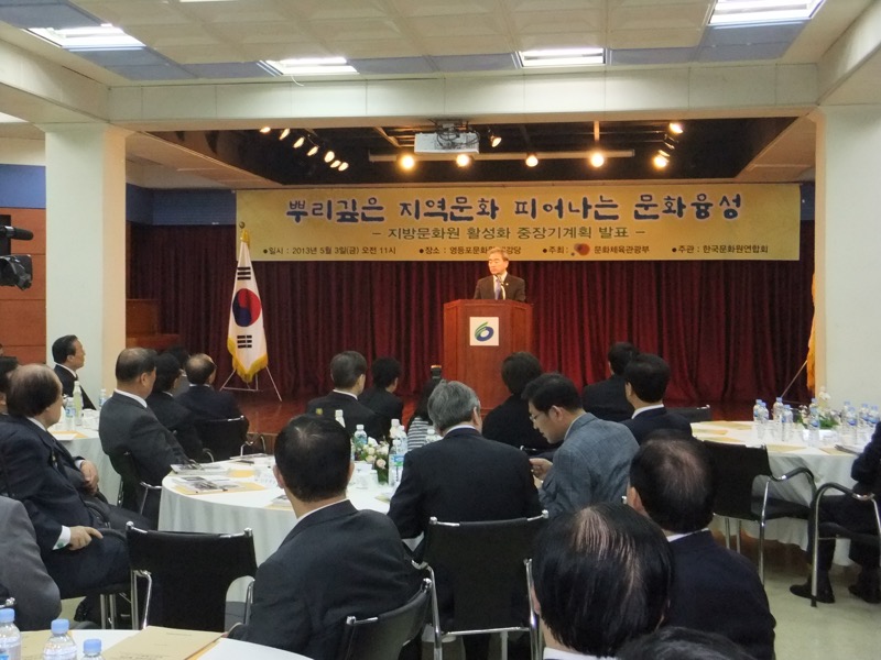 2013. 05. 03. 금요일 11시 서울 영등포 문화원에서 유진룡 문화체육관광부 장관 및 국회문방위원장, 문화부 기자 등 약 80여명이 참석한 가운데 2013지방문화원 활성화 중장기계획 발표를 가졌습니다.