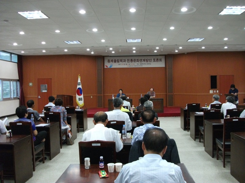2012. 8. 14. 오후3시 용평면사무소 대회의실에서 전통문화보존위원회 위원과 읍면 민속보존회를 대상으로 "동계올림픽과 전통문화연계방안 토론회"를 열었습니다. 강원대 차장섭교수와 유명희 강원도 문화재위원회 전문위원을 모시고 평소 궁금했던 전통문화와 지역민속을 자연스럽게 질의하며 방법을 모색했습니다.
