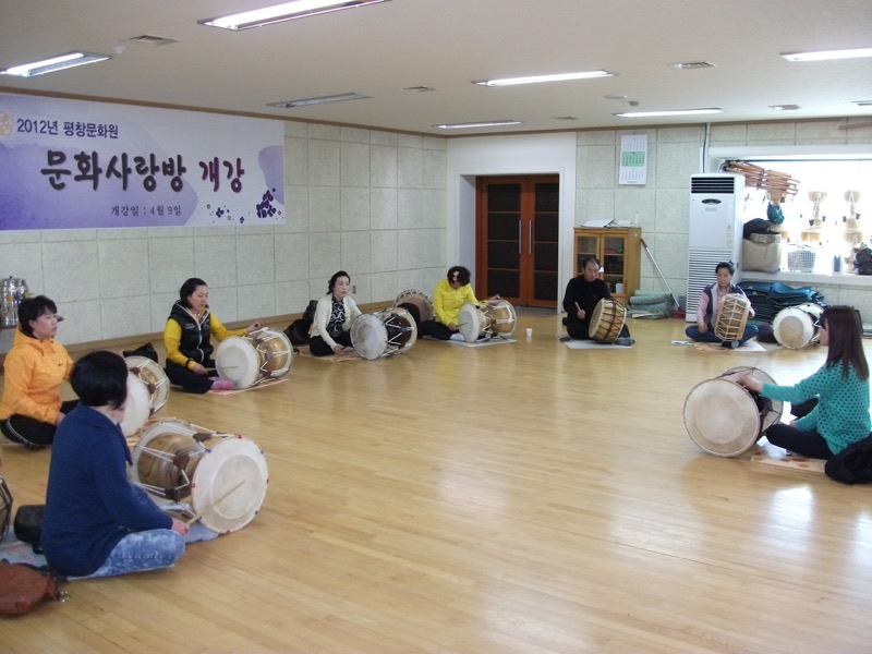 2012.4.12. 문화학교 사물놀이반이 개강을 했습니다. 기존에 하셨던분들도 계시고 새로 등록하신분도 계신데 앞으로도 열심히 수업에 임해주시기 바랍니다. 사물놀이는 매주 목요일 오전 10시~12시까지 연습실에서 신현솔 선생님께서 수업진행을 해주십니다.