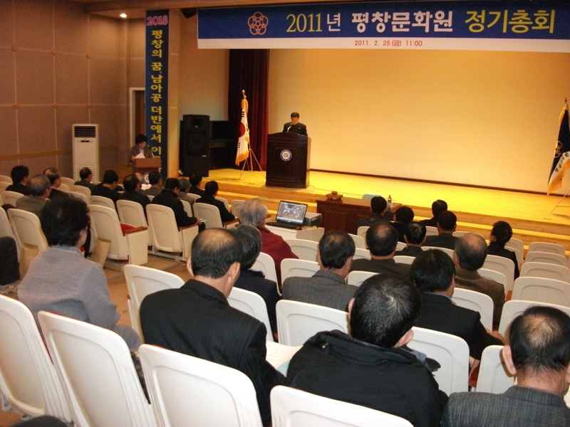 2011. 2. 25. 금요일 예술회관 소공연장에서 오전 11시에 평창문화원 임원, 회원분들을 모시고 정기총회를 열었습니다.