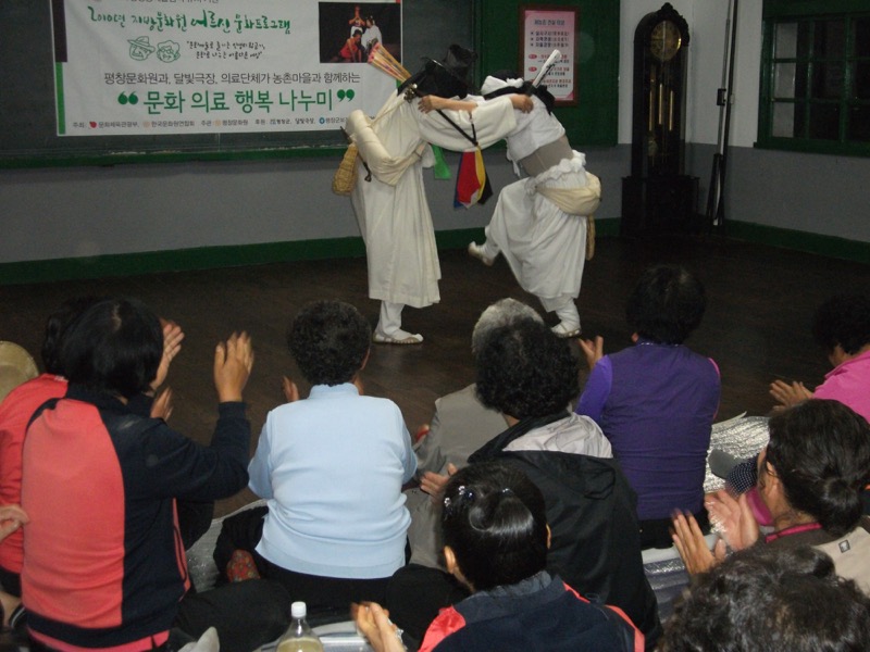이 날은 봉평의 달빛극장 단원들이 봉산탈춤과 갈라음악 등의 공연을 해주시고, 양성진 치과에서는 의사, 간호사분들께서 오셔서 치과진료도 같이 병행해 주셔서 뜻깊은 공연시간이 되었습니다.
