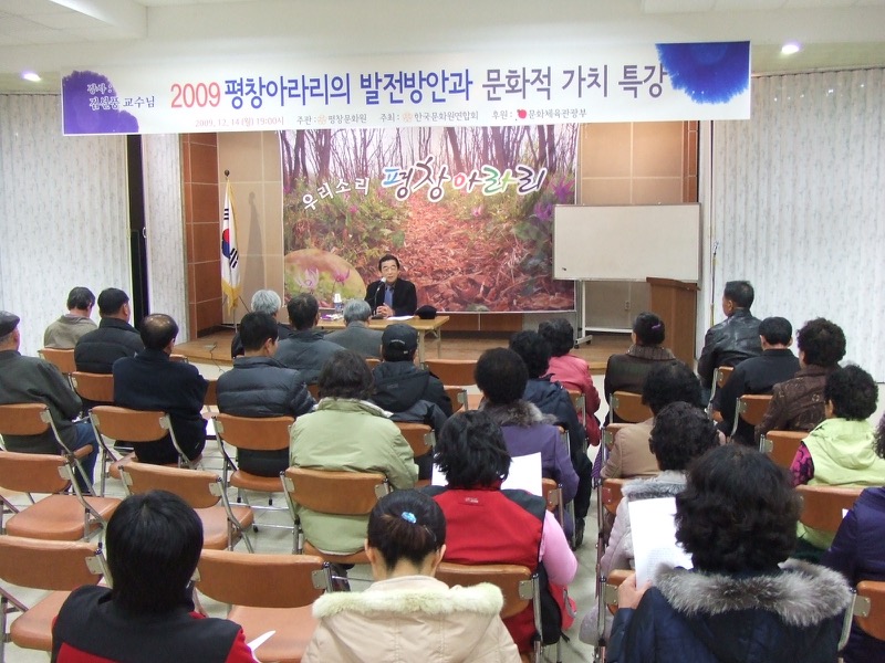 이 날은 중앙대학교 김선풍 교수님께서 "평창아라리의 발전방안과 문화적가치"라는 주제로 강의를 해 주셨습니다.