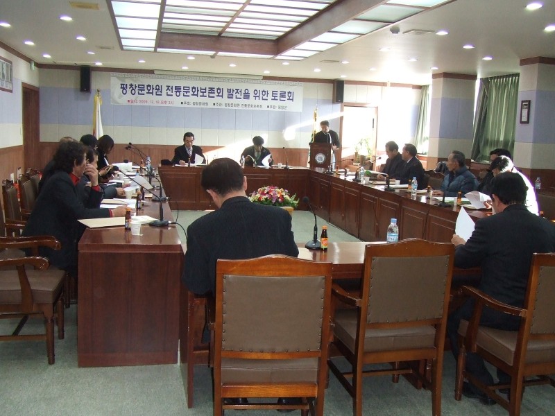 09.12.18.금요일 오후3시 대관령면사무소 회의실에서 평창문화원 전통문화보존회 발전을 위한 토론회를 하였습니다. 이날 강의는 평창의료원장님과 한중대학교 김선풍 교수님께서 전통문화의 발전을 위한 강의를 해 주셔서 뜻깊은 시간이 되었습니다.