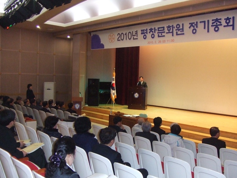 2010. 2. 26. 금요일 오전11시에 문화예술회관 소공연장에서 임원님들과 회원님들이 참석한 가운데 정기총회가 열렸습니다.