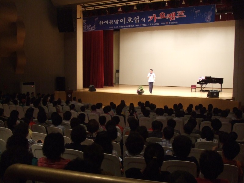 09.07.28.화요일 한여름밤 이호섭의 가요캠프를 열었습니다. 방송인 및 작곡가 이호섭의 진행으로 이혜리의 모르나봐 배우고, 이태호의 노래배우고, 춤추고, 서주경의 쓰러집니다 배우면서 웃고 즐기며 한 여름밤 더위를 식힐 수 있었습니다.