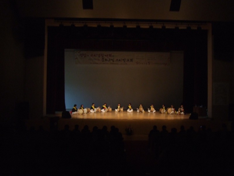 2008. 10. 30. 목요일 평창문화예술회관에서 제6회 소리경창대회와 문화학교 소리발표회를 열었습니다. 깊어가는 가을밤에 전국사물놀이대회에서 동상을 수상한 사물놀이반의 공연을 보니 덩실덩실 어깨춤이 절로 날만큼이 너무나 흥이 났습니다.